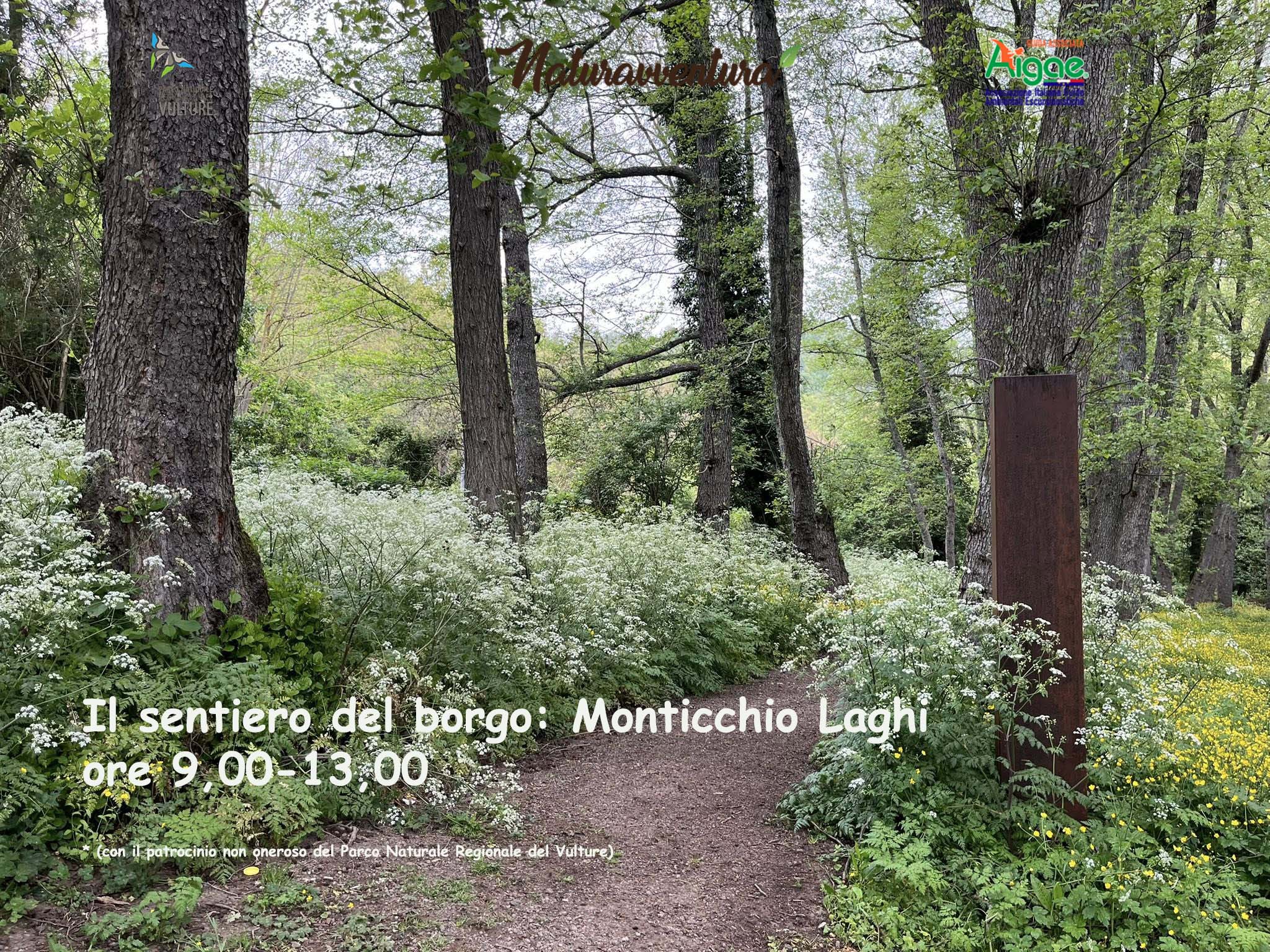 Il sentiero del borgo è stato creato per collegare Monticchio Bagni ai Laghi di Monticchio. Questa escursione prevede la possibilità di percorrerlo per intero partendo dal borgo verso i laghi oppure di viverlo solo in parte partendo dal belvedere del lago grande verso i ruderi di Sant’Ippolito..
